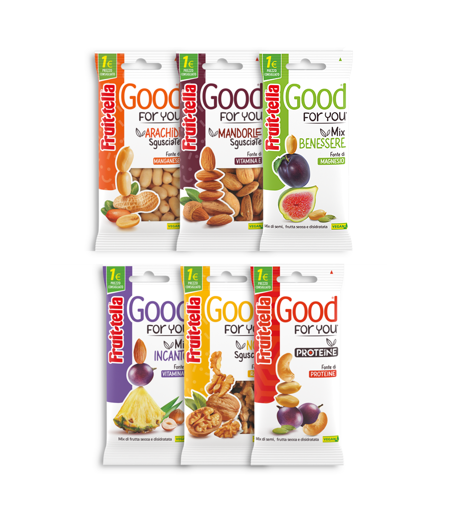 E per una pausa ancor più gustosa, Fruittella Good For You è anche nella versione con cioccolato fondente, con cacao 72%, e caramello: entrambe con semi di chia e un pizzico di sale di Sicilia, per un’esperienza di gusto ancor di più coinvolgente e appagante!